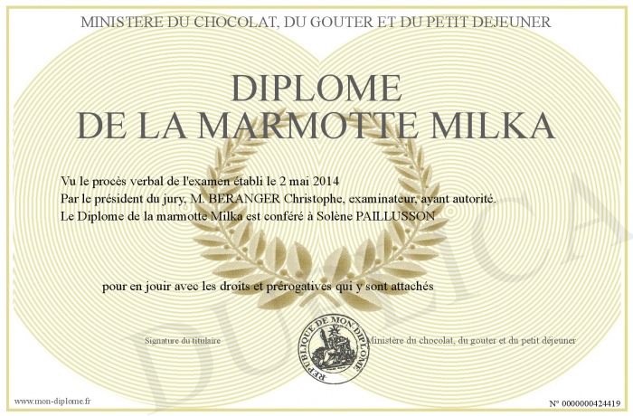 Envoyez par email votre Diplome de la marmotte Milka personalisé