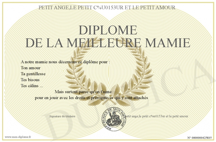 Envoyez par email votre Diplôme de la meilleure mamie personalisé