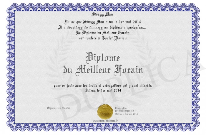 Envoyez par email votre Diplôme du Meilleur Forain personalisé