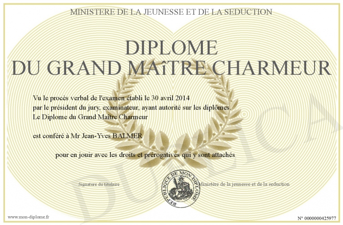Envoyez par email votre Diplôme du Grand Maître Charmeur personalisé