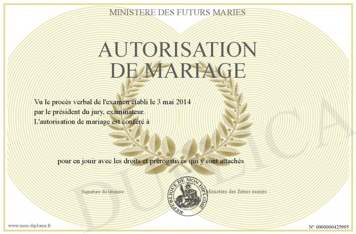 Envoyez par email votre Autorisation de mariage personalisé