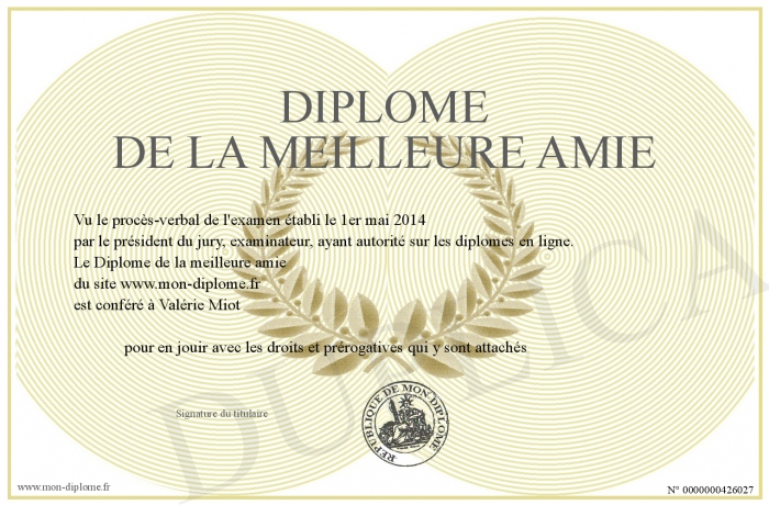 Envoyez par email votre Diplôme de la meilleure amie personalisé