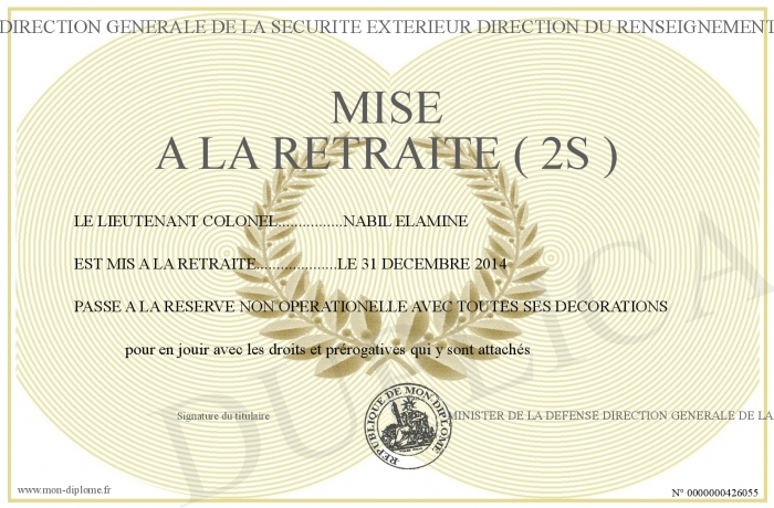 envoyé par le MINISTER DE LA DEFENSE DIRECTION GENERALE DE LA SECURITE EXTERIEUR DIRECTION DU RENSEIGNEMENT DIVISION NORD AFRIQUE !