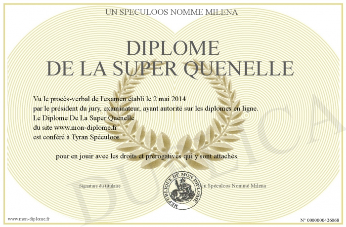 Envoyez par email votre Diplôme De La Super Quenelle personalisé