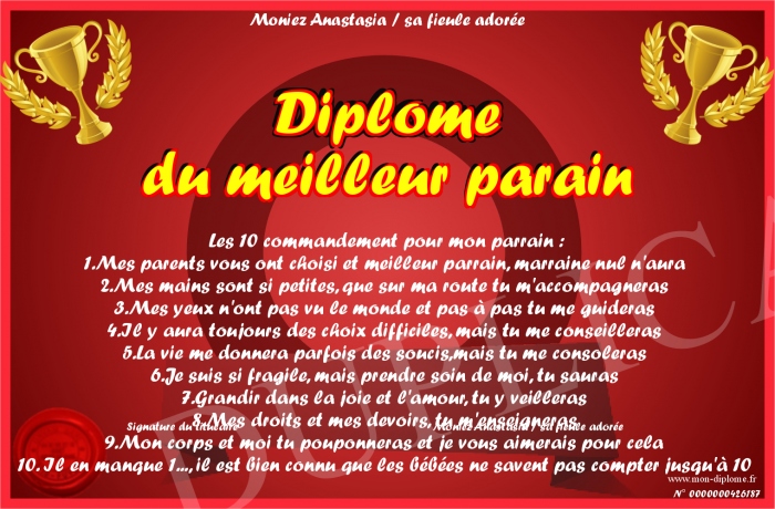 Envoyez par email votre Diplôme du meilleur parain personalisé