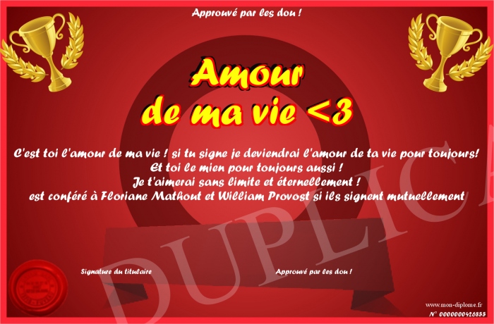 Envoyez par email votre Amour de ma vie -3 personalisé