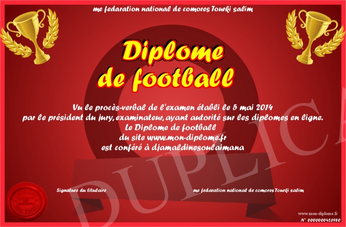 Envoyez par email votre Diplôme de football personalisé