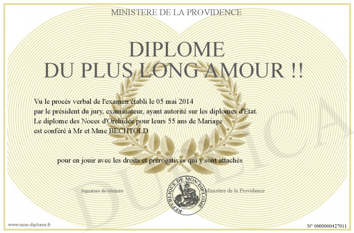 Envoyez par email votre Diplôme du Plus Long Amour !! personalisé