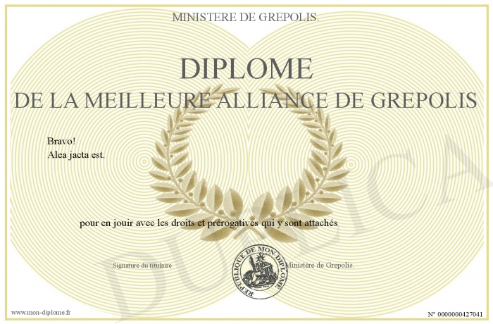 Envoyez par email votre Diplôme de la meilleure alliance de Grepolis personalisé