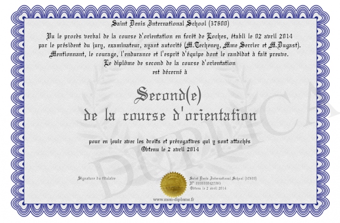 Envoyez par email votre Second(e) de la course d'orientation personalisé