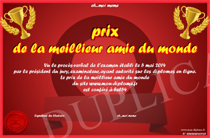 Envoyez par email votre prix de la meillieur amie du monde personalisé