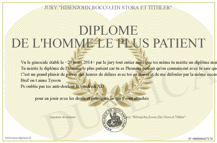 Envoyez par email votre Diplôme de l'homme le plus patient personalisé