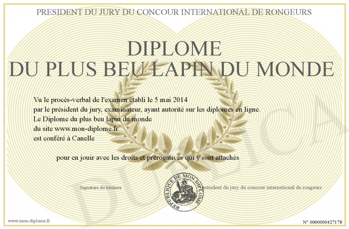 Envoyez par email votre Diplôme du plus beu lapin du monde personalisé