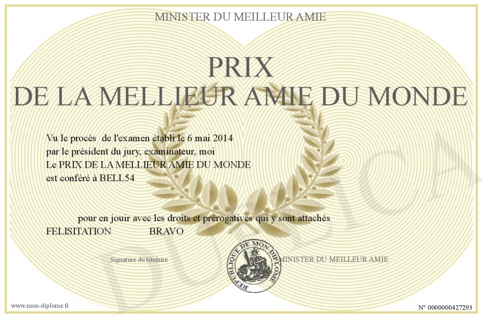 Envoyez par email votre PRIX DE LA MELLIEUR AMIE DU MONDE personalisé