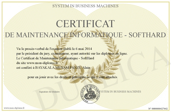 Envoyez par email votre Certificat de Maintenance Informatique - SoftHard personalisé