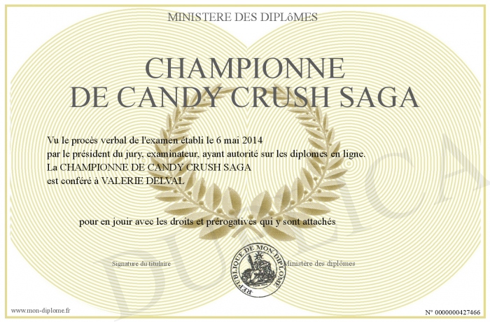 Envoyez par email votre CHAMPIONNE DE CANDY CRUSH SAGA personalisé