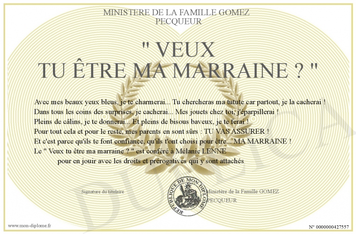Envoyez par email votre - VEUX TU ÊTRE MA MARRAINE ? - personalisé