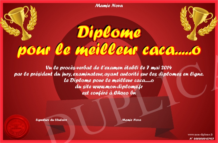 Envoyez par email votre Diplôme pour le meilleur caca.....o personalisé