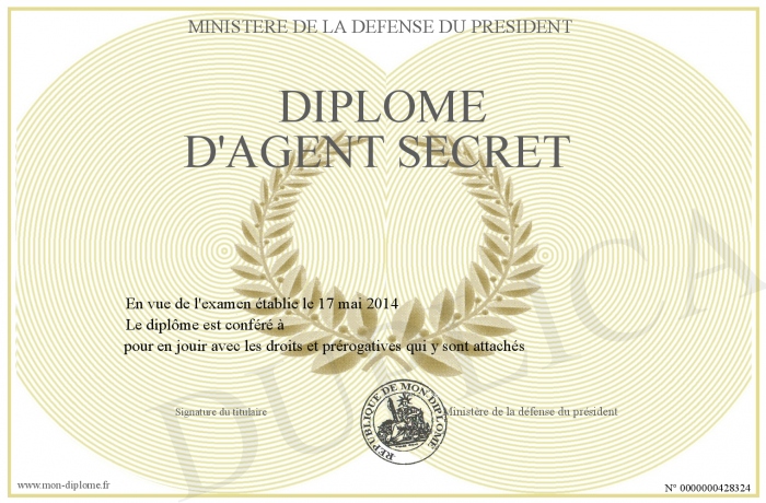 Envoyez par email votre Diplôme d'Agent Secret personalisé