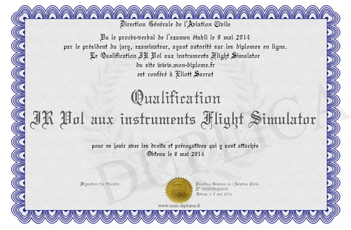Envoyez par email votre Qualification IR Vol aux instruments Flight Simulator personalisé