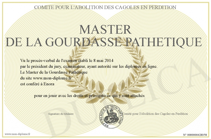 Envoyez par email votre Master de la Gourdasse Pathétique personalisé