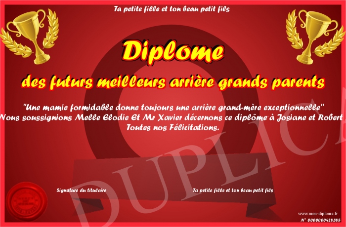 Envoyez par email votre Diplôme des futurs meilleurs arrière grands parents personalisé