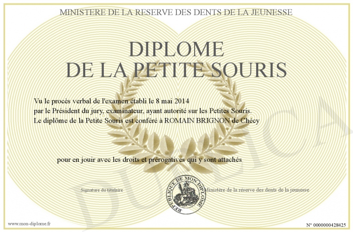 Envoyez par email votre Diplôme de la Petite Souris personalisé