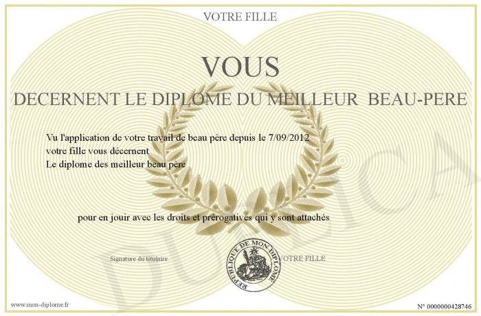 Envoyez par email votre vous décernent le Diplôme du meilleur beau-père personalisé