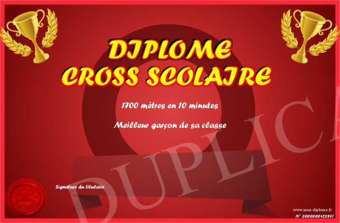 Envoyez par email votre DIPLOME CROSS SCOLAIRE personalisé