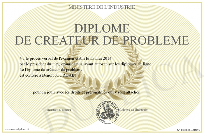 Envoyez par email votre Diplôme de créateur de problème personalisé