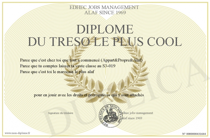 Envoyez par email votre Diplôme du Tréso le plus cool personalisé