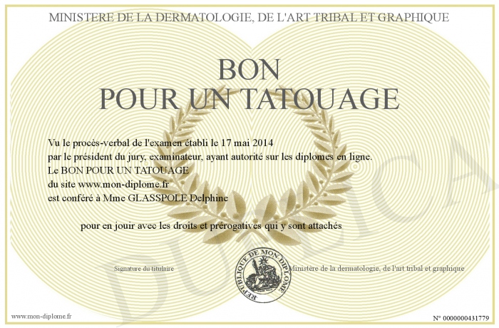 Envoyez par email votre BON POUR UN TATOUAGE personalisé