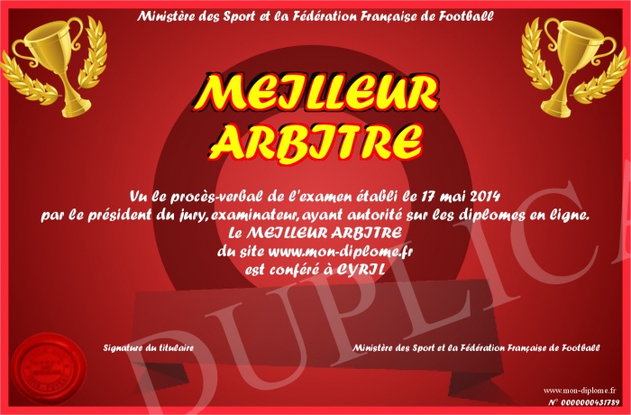 Envoyez par email votre MEILLEUR ARBITRE personalisé