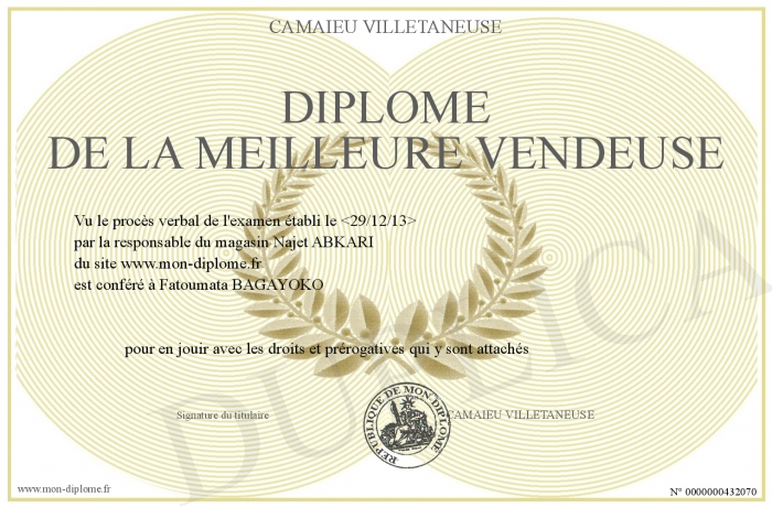 Envoyez par email votre Diplôme de la meilleure vendeuse personalisé