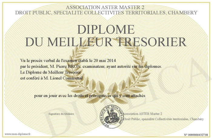 Envoyez par email votre Diplôme du Meilleur Trésorier personalisé