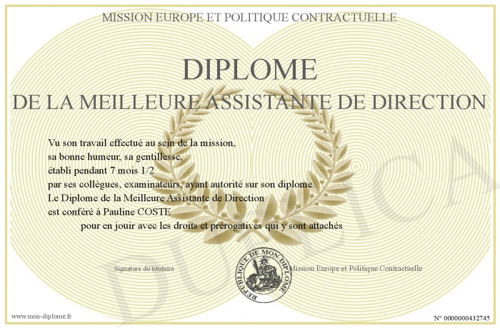 Envoyez par email votre Diplôme de la Meilleure Assistante de Direction personalisé