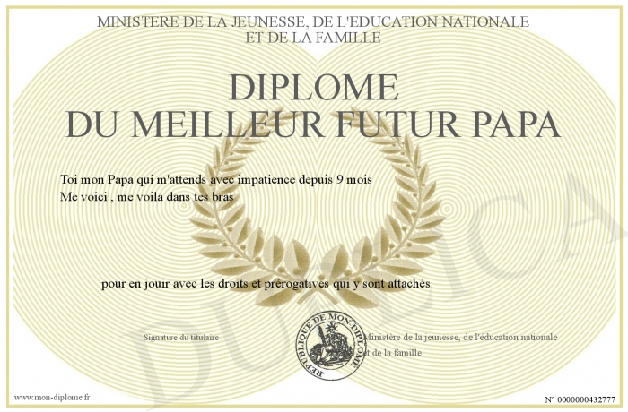 Envoyez par email votre Diplôme du meilleur futur Papa personalisé