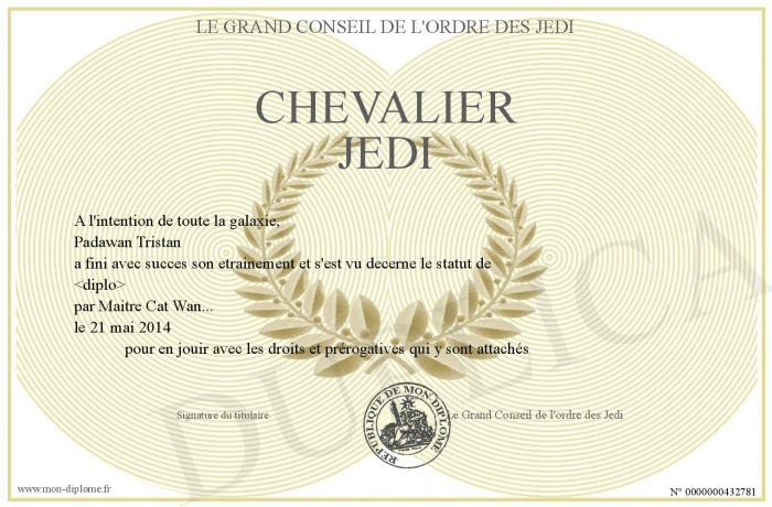 envoyé par le Le Grand Conseil de l'ordre des Jedi !