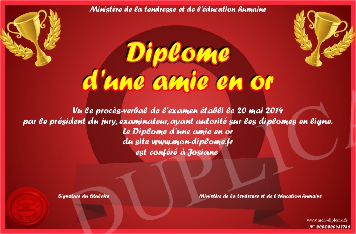 Envoyez par email votre Diplôme d'une amie en or personalisé
