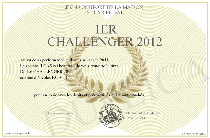 Envoyez par email votre 1er CHALLENGER 2012 personalisé