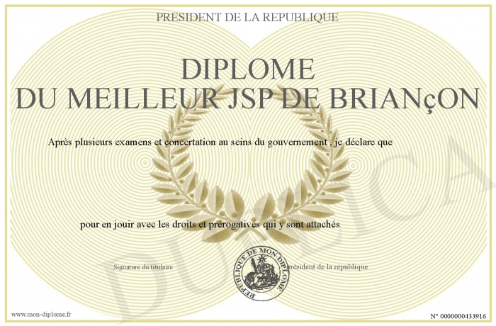 Envoyez par email votre diplôme du meilleur JSP de briançon personalisé