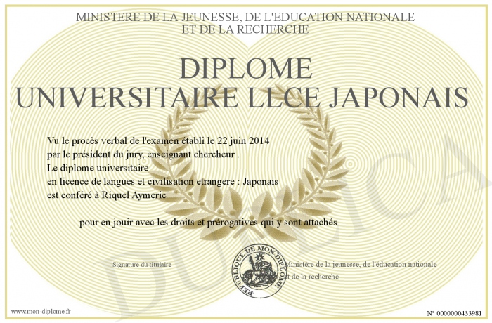 Envoyez par email votre Diplôme universitaire llce japonais personalisé