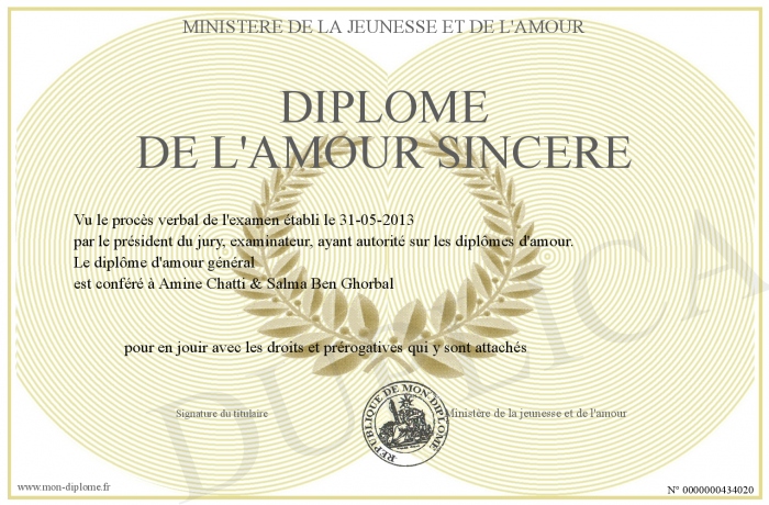 Envoyez par email votre Diplôme de l'amour sincère personalisé
