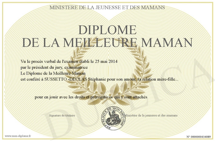Envoyez par email votre Diplôme de la Meilleure Maman personalisé