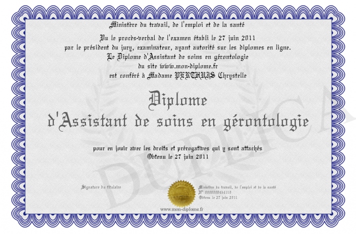 Envoyez par email votre Diplôme d'Assistant de soins en gérontologie personalisé