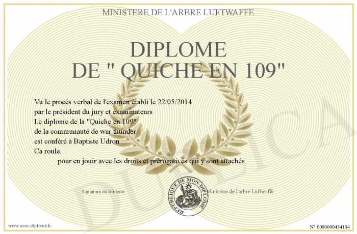 Envoyez par email votre Diplôme de - Quiche en 109- personalisé