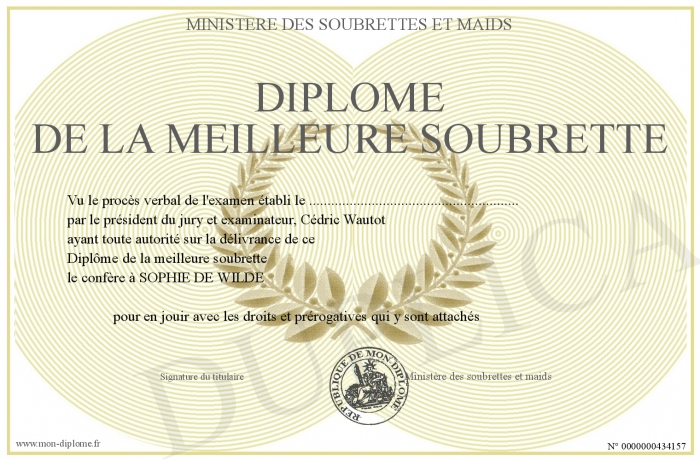 Envoyez par email votre Diplôme de la meilleure soubrette personalisé