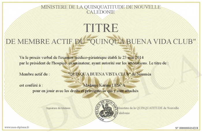 Envoyez par email votre Titre de membre actif du -QUINQUA BUENA VIDA CLUB- personalisé