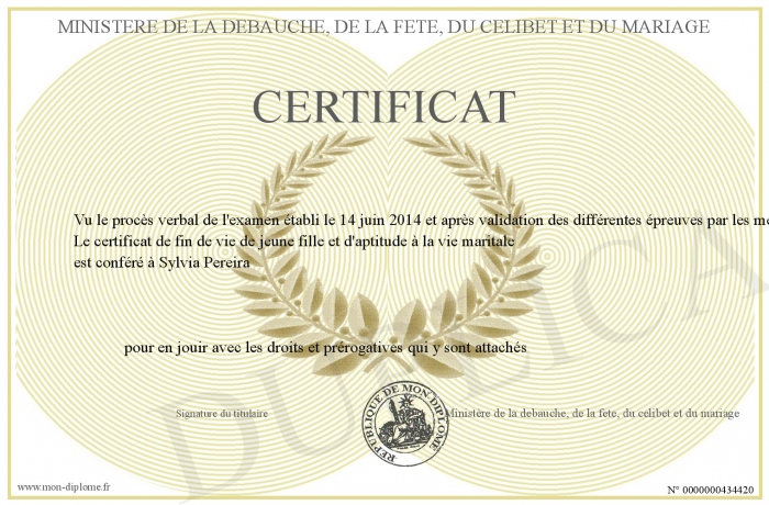 envoyé par le Ministère de la debauche, de la fete, du celibet et du mariage !