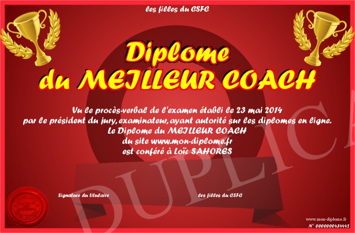 Envoyez par email votre Diplôme du MEILLEUR COACH personalisé